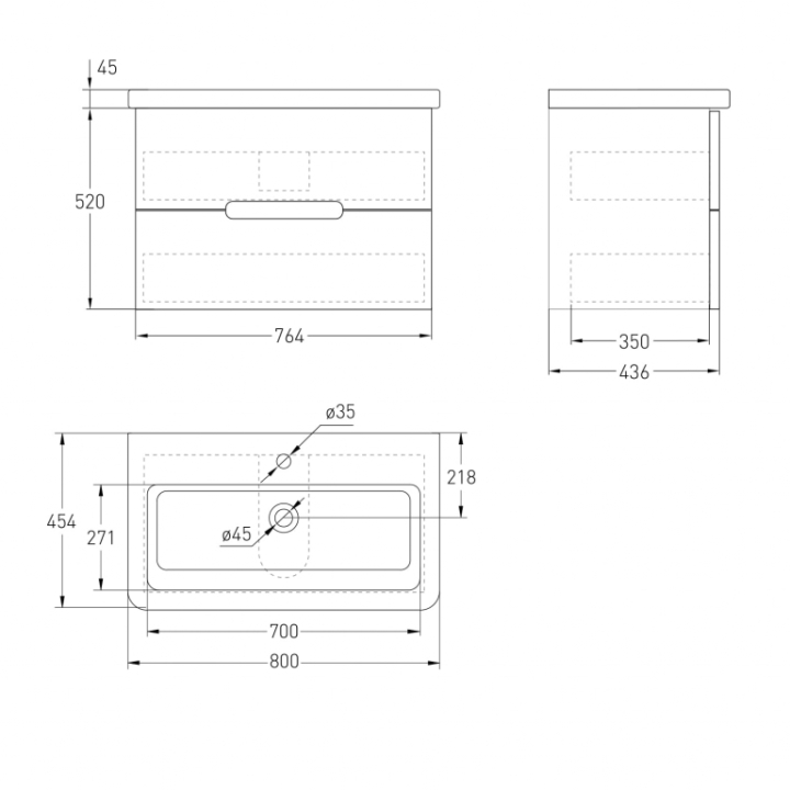 Отзывы о Тумба подвесная VOLLE Solo 1910.308009 с умывальником 80 см antracita