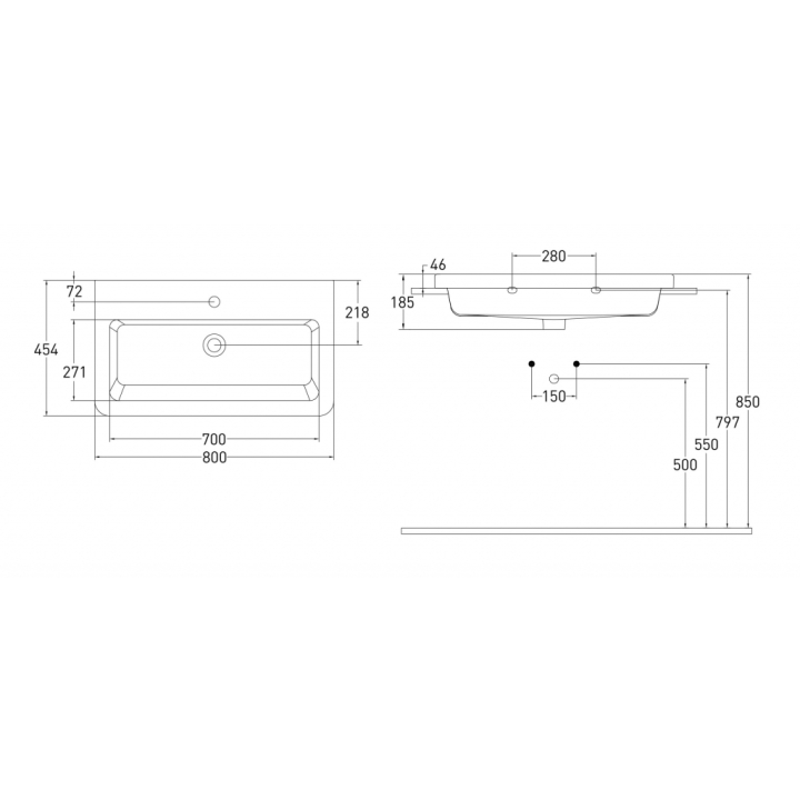 Особенности: Керамическая накладная раковина с переливом, 1 отверстие под смеситель