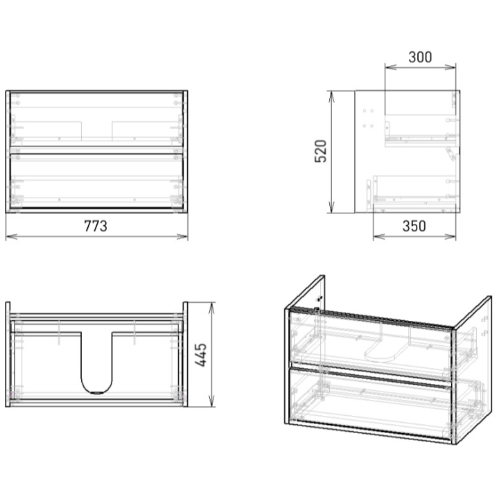 Тумба подвесная Volle TEO + умывальник накладной арт 15-17-80(2) 15-88-81
