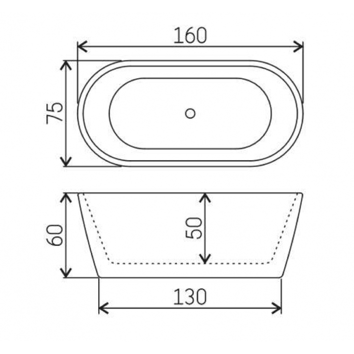 Ванна VOLLE отдельно стоящая акриловая 1600*750*600 мм, 12-22-612